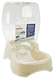 The Petmate® Pet Café Waterer simplifies your life while enhancing the life of your pet. Featuring an automatic gravity design that keeps your pet hydrated by replenishing your pet's water supply. The eco-friendly water hopper automatically fills the water reservoir when levels get low and features a large water dispensing hole making the bottle easy-to-clean. The Pet Café's fashionable base features easy-grab cutouts making the Waterer easy to maneuver and comes in a variety of colors to complement any home decor. Constructed using more environmentally sustainable PET vs. PVC bottles. Pet parents choose from an assortment of sizes. Made in the USA.